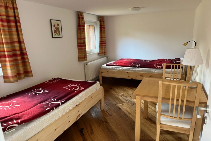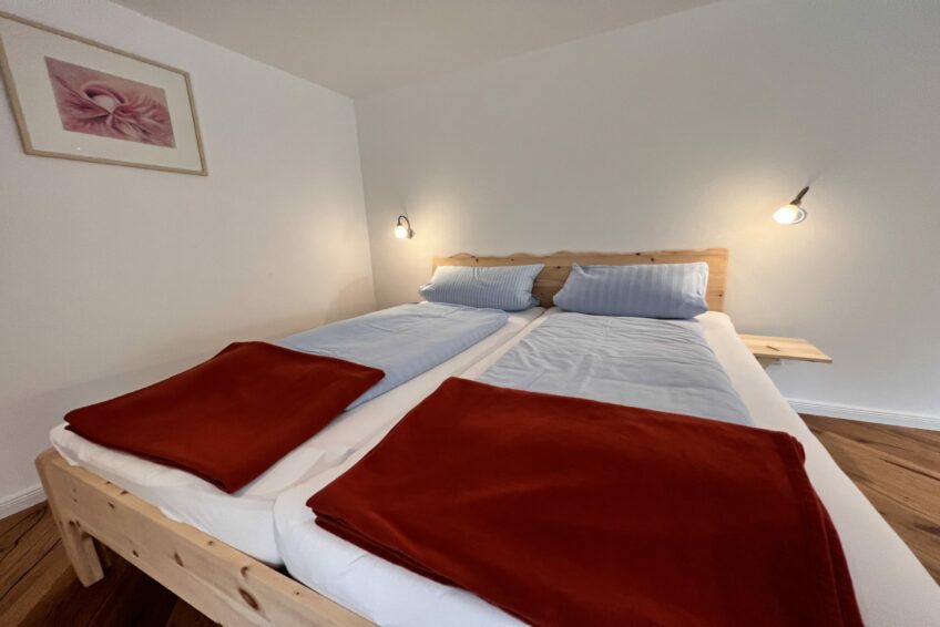Für Familien mit 1-3 Kindern ist die Unterbringung in den Häuschen ideal: Das Eltern-Schlafzimmer ist mit Doppelbett ausgestattet, das Nebenzimmer hat 2 einzelne, normal große Betten (0,9 x 2 m) oder ein Ausziehbett (1,8 x 2 m).