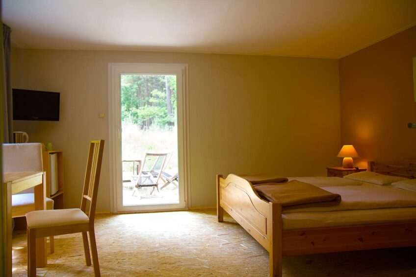 Alle Häuschen sind mit Holzmöbeln und Bio-Matratzen ausgestattet und Nichtraucherwohnungen. TV, Kühlschrank und Wasserkocher befinden sich in jedem Waldhäuschen. Unsere Waldsiedlung ist übrigens WLAN-frei (Waldhäuschen, Öko-Waldhäuschen und die Öko-Wohnungen im Waldhaus)